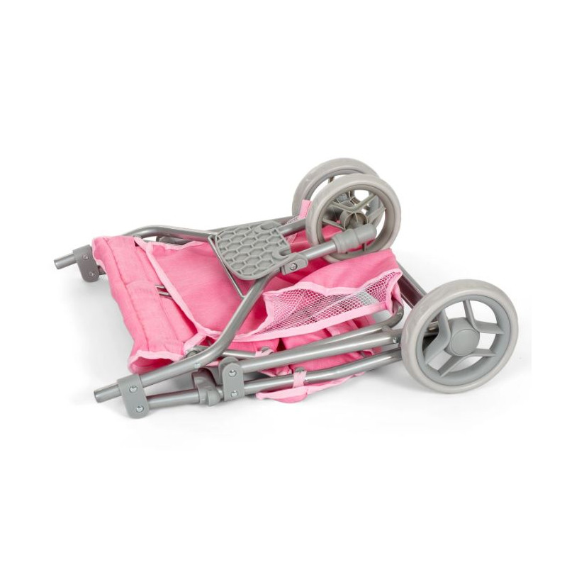 Den flexibla suffletten kan fällas framåt och bakåt och skyddar dina dockor och gosedjur från väderväxlingar. Under vagnen finns en förvaringskorg för praktisk förvaring av dockornas tillhörigheter eller den medhavda matsäcken.