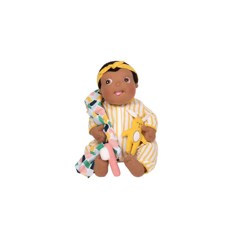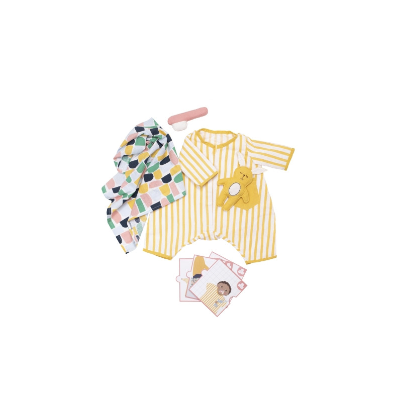 Rubens Babys Sovset för Rubens Baby-dockan är ett trendigt och lekfullt klädval för roliga lekstunder. I setet ingår: