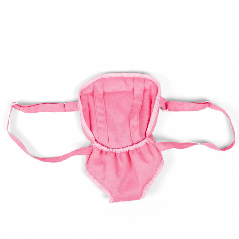 Selen har ingen dragkedja eller knappar, vilket gör det enkelt för barnet att spänna fast dockan/nallen själv. Den är lätt att sätta på rygg eller mage och har justerbara remmar som passar barn i alla åldrar.