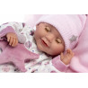 Det här är dockan Hilda som blundar när du lägger henne. Hon är klädd i vit sparkdräkt med planeter på och rosa mössa med pompom och stjärna. När man trycker Hilda på kroppen så gråter hon och säger "mamma" och "pappa".