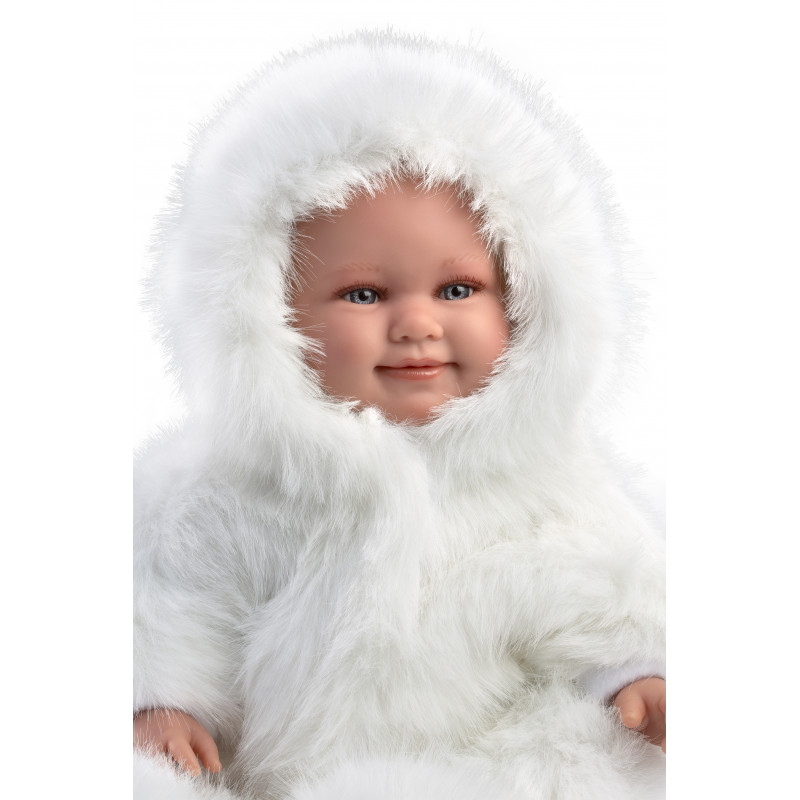 Vilda är utrustad för kallt väder! Får hon ett litet tryck på magen så skrattar hon glatt!