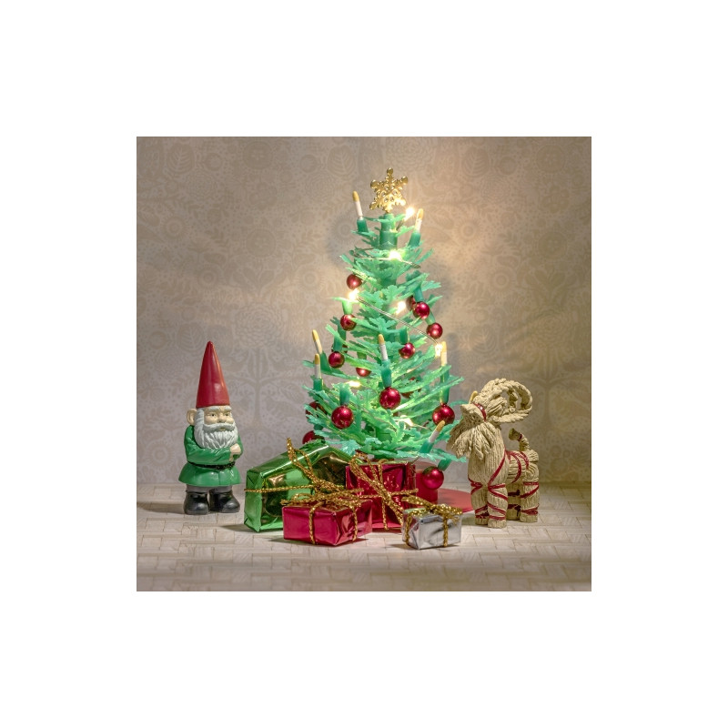 Detta fantastiska tillbehörsset innehåller en julgran med batteridriven LED-belysning, en tomte, en bock och fyra fina julklappar.