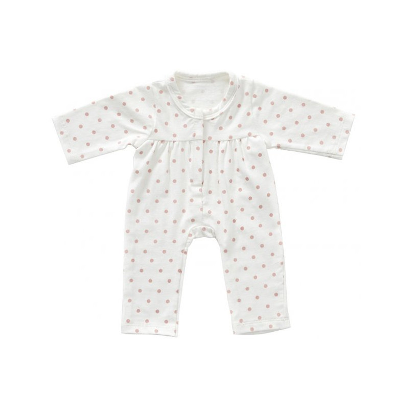 En mjuk och skön sparkdräkt med prickar. Passar dockor som är 40-45 cm långa.