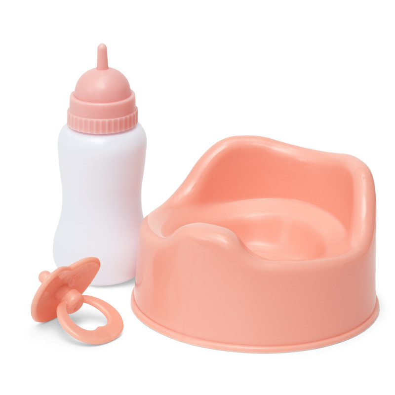 Lek mamma, pappa och barn! Potträna, trösta och mata dockan med docktillbehör som nappflaska, potta och napp - alla viktiga tillbehör du behöver till en babydocka.