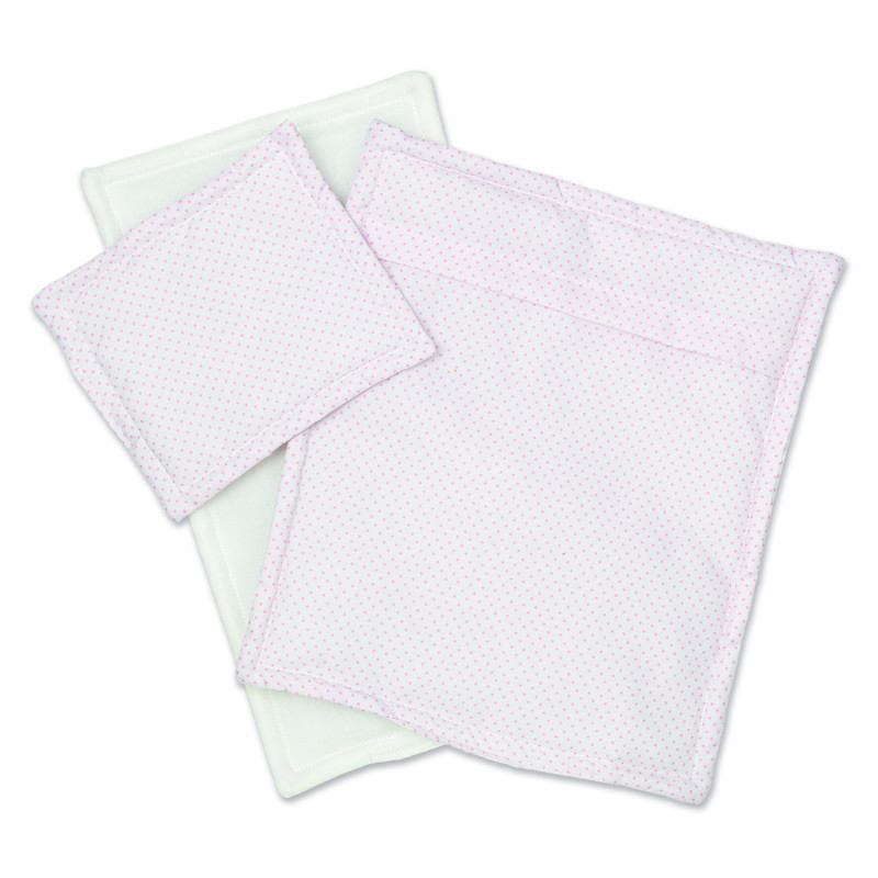Bädda fint till dockan eller nallen med detta söta bäddset med härliga prickar i ljusa fina färger. Passar perfekt till Skrållan dockvagn i trä.