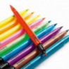 Ett set med starka färger i 10 filtpennor med dubbla spetsar - en smal och stabil spets samt en mjuk och pensel-lik spets för att göra linjer med varierande bredd eller fylla i större områden. Pennor av hög kvalitet och konstnärskvalitet som låter barn (och andra) skapa vackra bilder och konstverk hur de vill. Färgen i pennorna går att tvätta bort från händer, kläder och annat liknande. Pennorna har 6 klassiska och 4 fluorescerande (absorberar ljus och lyser sen i mörkret eller när de utsätts för ultraviolett ljus) färger. ".