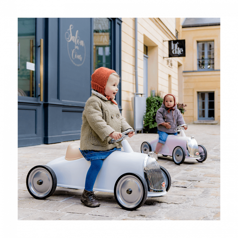 Bilen har funktionell styrning och stabila gummidäck som rör sig tyst runt i huset och även fungerar utmärkt utomhus. Den hjälper barnet att utveckla sin balans och motoriska färdigheter. Så snart barnet står upp kan han eller hon använda bilen säkert. En solid och mycket hållbar leksak.