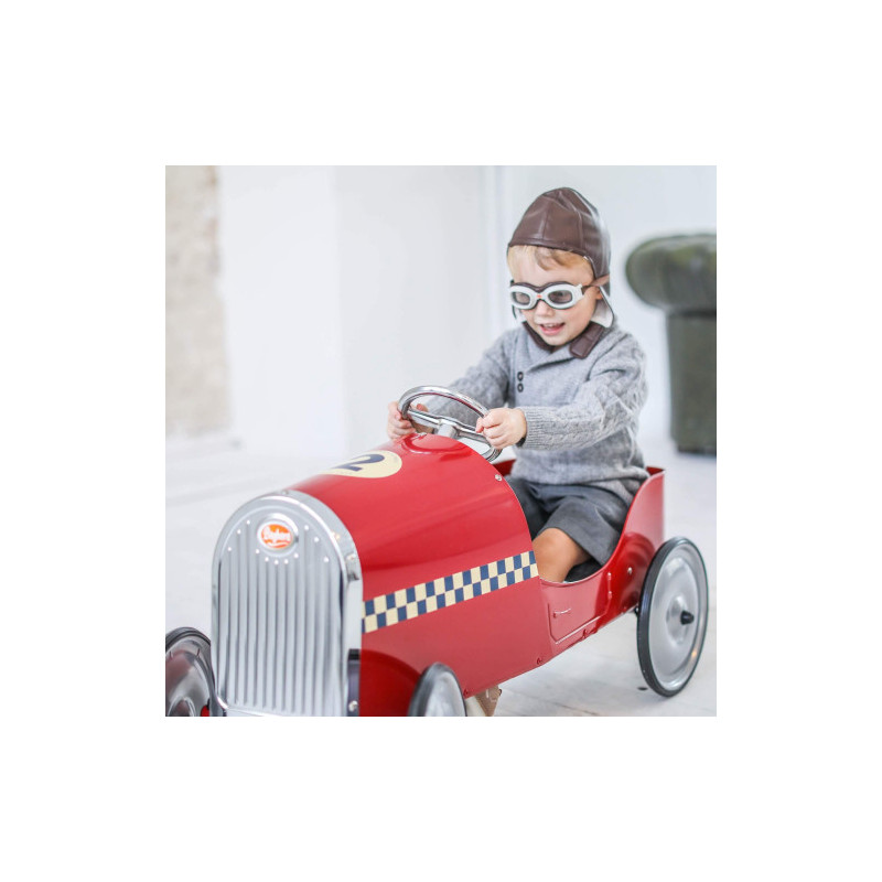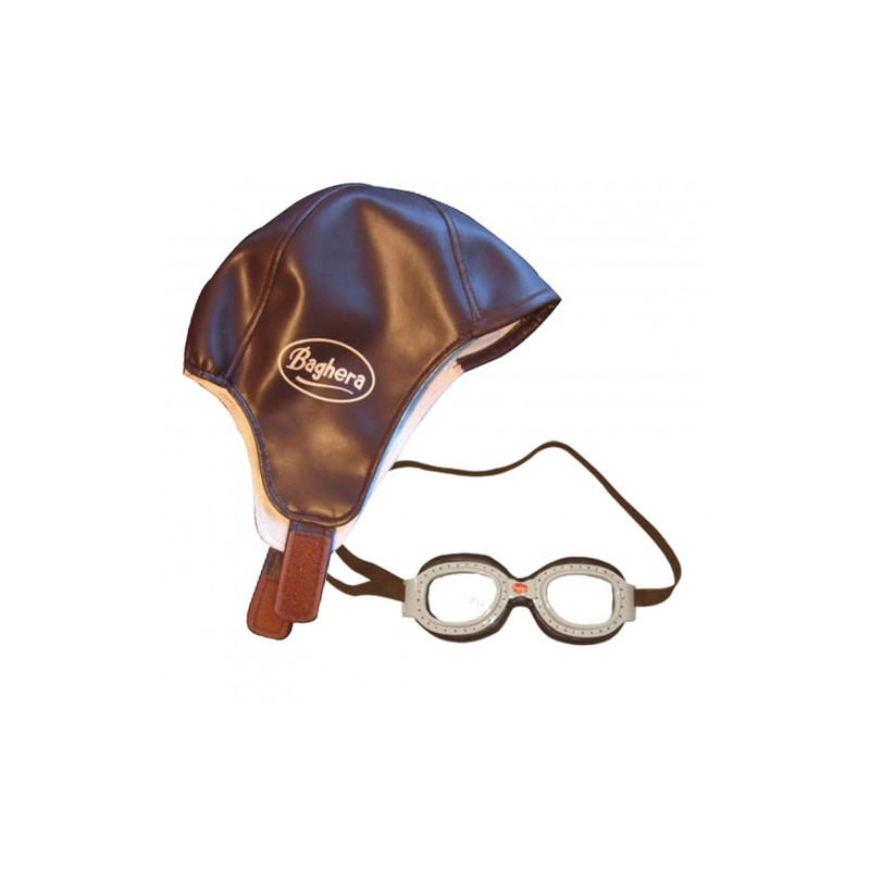 Häftigt racing kit för den fartfyllda färden på en Baghera sparkbil. Mössa med mjuk insida och kardborreband för bra passform. Glasögonen har en elastisk rem som gör att de passar barnet.