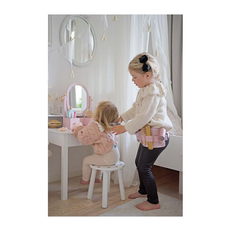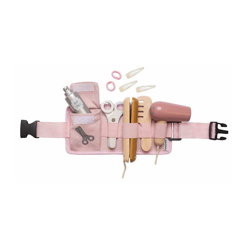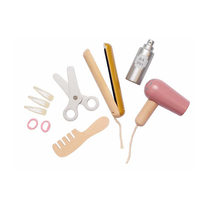 Nu kan du äntligen öppna din egen lilla frisörsalong i hemmet! Med vårt söta frisörset finns allt som behövs för att klippa och styla olika roliga frisyrer. Klipp,föna och platta, bara fantasin sätter gränser för vilka tokiga eller snygga frisyrer man vill ha. Sätt upp håret med de söta klämmorna eller hårsnoddarna som ingår.