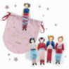Ett set med 5 söta små dockor i trä att klä upp genom att linda in dem i garnen och tyll-banden som medföljer. När dockorna är påklädda kan barnen berätta sina problem för dem och låta dockorna ligga under deras kudde under natten i sin egna lilla vackra påse som medföljer setet. Dockorna är inspirerade av en tradition i Guatemala, där de små dockorna avhjälper mindre problem och låter barnen sova bra natten igenom. Innehåll. .
