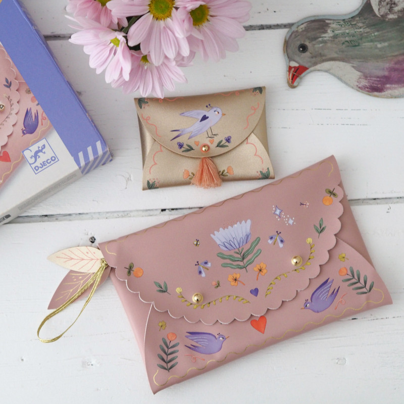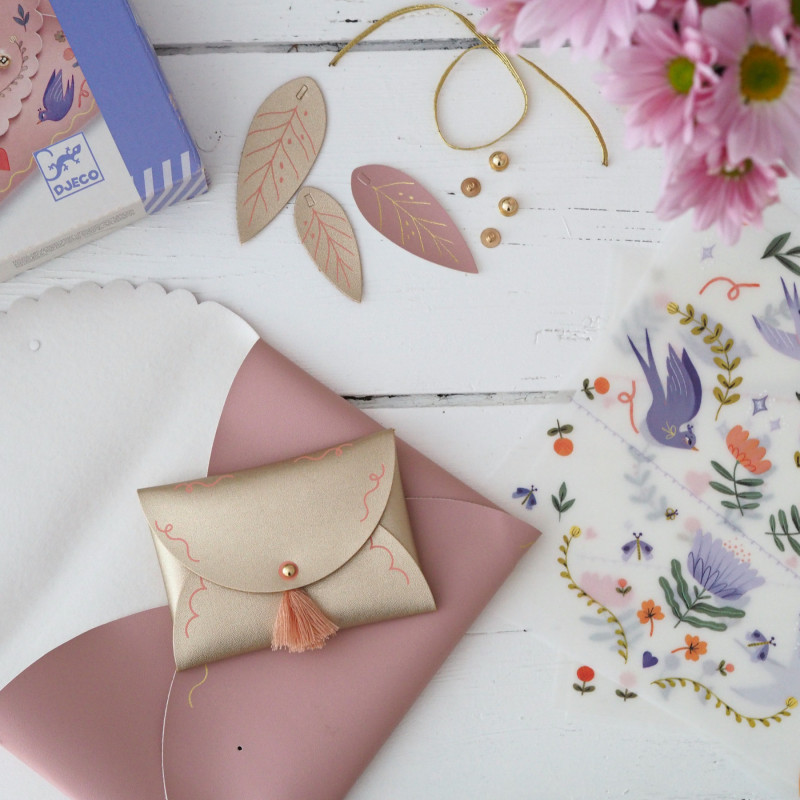 Ett kreativt kit för att göra ett vackert och trendigt set med en matchande handväska och plånbok i konstläder. Det är bara att gnugga de eleganta dekalerna med en penna för att överföra dem till konstlädret och dekorera de små väskorna, du kan följa förslagen i häftet eller skapa dina egna kombinationer och mönster. Sedan sätter du ihop varje handväska genom de små utstansade hålen med hjälp av skruvlåsen och lägger till en snygg tofs, handledsrem och vackra dekorationer av konstläder. Du kommer att bli så stolt över dina nya modeaccessoarer! De förskurna bitarna och det smarta skruvlåssystemet ger en enkel montering utan lim eller sax och de över 100 dekalerna ger många möjligheter när du ska dekorera väskorna. Tillverkat med FSC®️ certifierat papper och kartong. Innehåll: 2 utskurna väskor i konstläder, 2 ark med över hundra dekaler, 3 skruvlås, 4 dekorationer i konstläder, 1 tofs, 1 gyllene handledsrem, 1 häfte med steg-för-steg instruktioner i bilder. Från +6 år. Storlek: stora väskan är ca 12,5 x 19 cm, den lilla väskan är ca 7 x 10 cm.