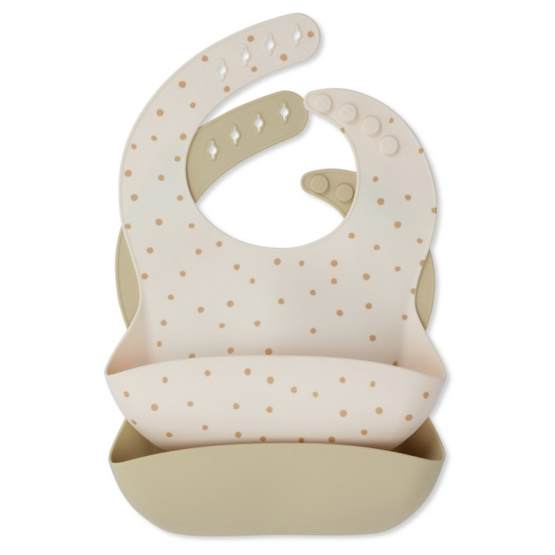 Ett set med 2-pack haklappar tillverkade i 100% Silikon, mjuk och följsam men fyller ändå sin funktion. Haklappen har en formad ficka som fångar upp spill den är lätt att torka av. Man stänger enkelt haklappen med tryckknappar i nacken. Mått 20 x 27 cm Material: 100% Silikon