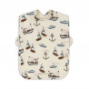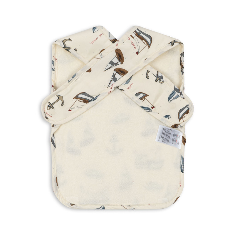 En lite större haklapp från danska Konges Slöjd tillverkad i 100% Ekologisk bomull. Lätt att torka av, haklappen sitter ordentligt med ett kors i ryggen, tas enkelt på och av genom att lossa kardborren.