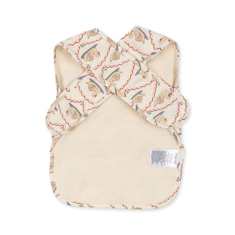 En lite större haklapp från danska Konges Slöjd tillverkad i 100% Ekologisk bomull. Lätt att torka av, haklappen sitter ordentligt med ett kors i ryggen, tas enkelt på och av genom att lossa kardborren.