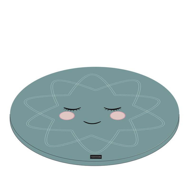 Superfin broderad lekmatta från Roommate. Tyget som omsluter mattan är 100% ekologisk och GOTS- Certifierad.