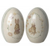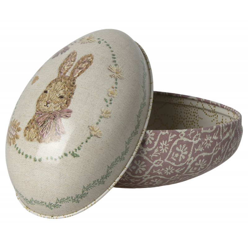 Ett set med 2 påskägg i metall. Det mindre ägget (11cm) får plats i det större (14cm). Dekorationen på äggen är Dorthe Mailils personliga broderi som gjordes till ett vackert tryck på äggen. Metalläggen följer EU - livsmedelsförordningen.