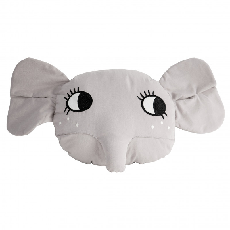 En kul och gosig ekologisk kudde i form av ett elefanthuvud med stora utstående öron, en kort snabel samt broderade detaljer. En snygg, mjuk och skön vän att ha i soffan eller sängen. Oeko-Tex certifierad och sydd av 100% ekologiskt bomullstyg och fylld med polyester fiber. Tvättas i 30°C skontvätt samt hängtorkas vid behov. Håll borta från direkt solsken.