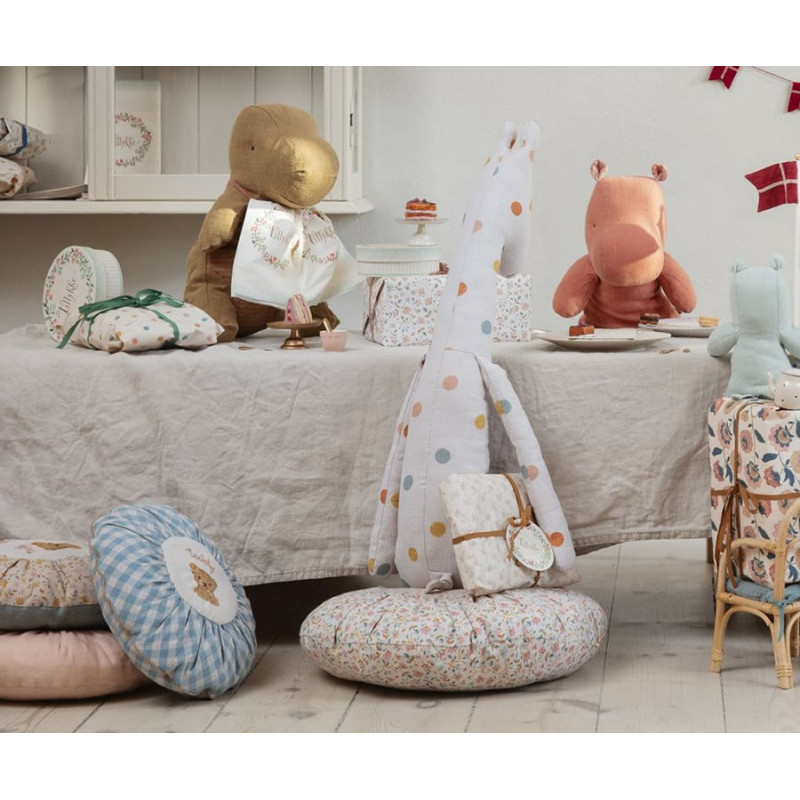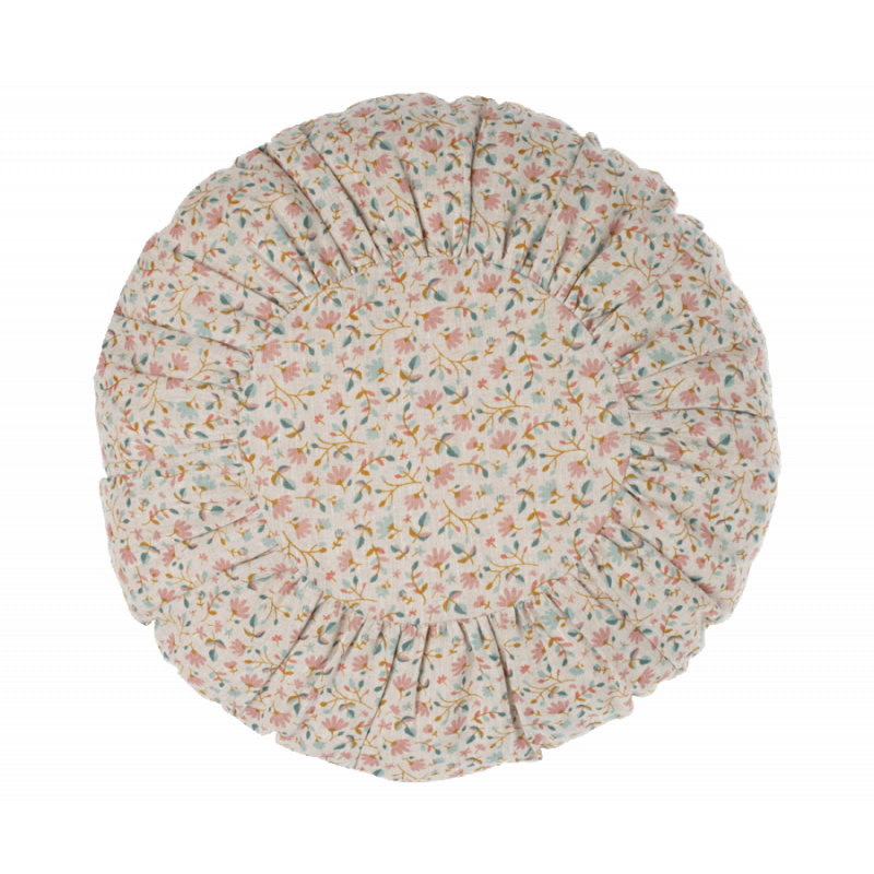 Kudde från Maileg med överdrag gjord i naturligt linne med vackert blommönster.