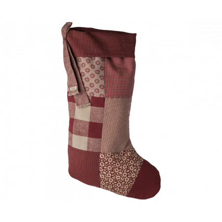Hitta den perfekta platsen i ditt hem för att hänga upp denna vackra julstrumpa gjord i en vacker mosaik av olika tyger i julens färger. Låt jultomten komma på besök under december med små överraskningar för att skapa en magisk julstämning.