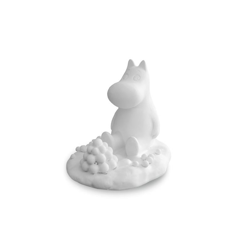 Mumintrollet har gett sig ut i snön för att bygga en snölykta. Stilren figurin tillverkad i matt polystone.