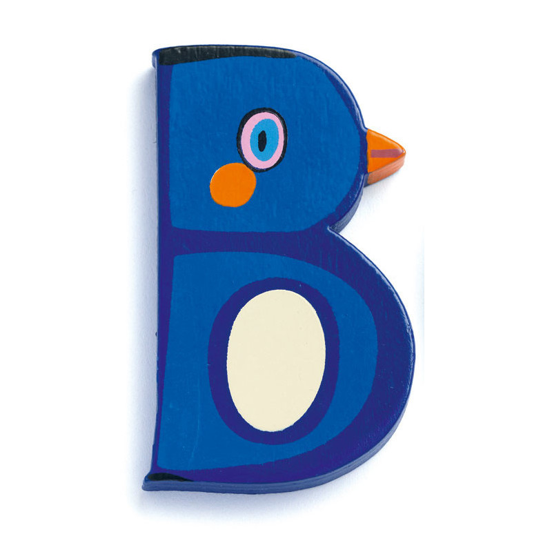 Färgglad träbokstav, fint målad som ett djur, att sätta på väggen eller dörrar.
