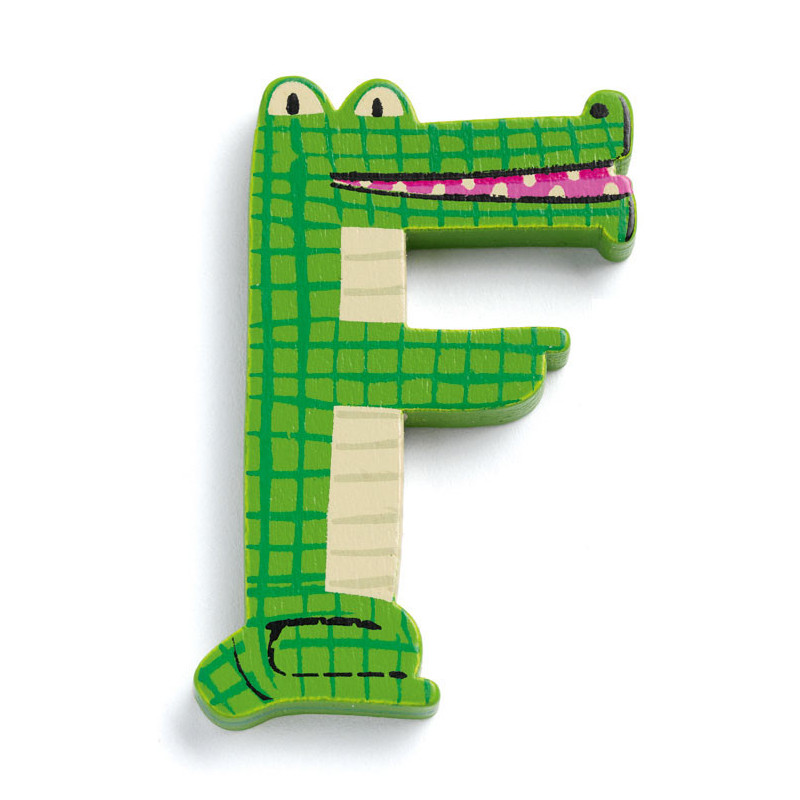 Färgglad träbokstav, fint målad som ett djur, att sätta på väggen eller dörrar.