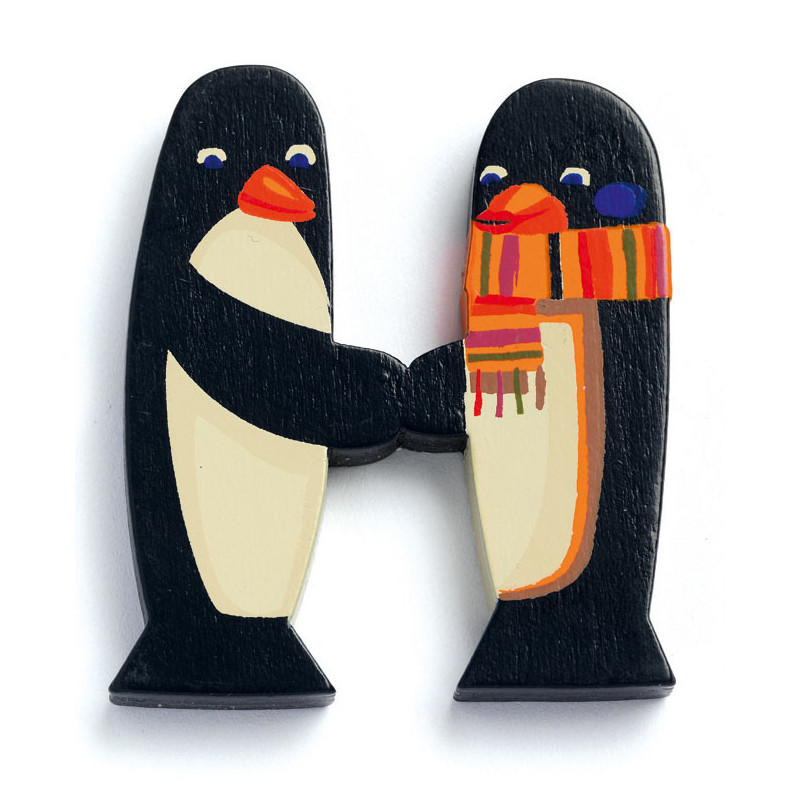 Färgglad träbokstav, fint målad som ett djur, att sätta på väggen eller dörrar.