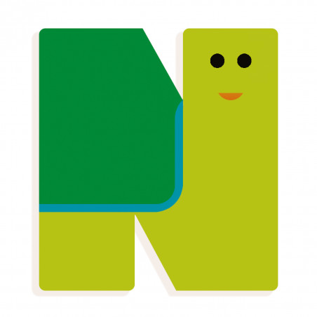 Färgglada och grafiskt designade bokstäver illustrerade som olika djur, tillverkade i trä och målade i giftfria färger. Varje bokstav har två dubbelhäftande fästen på baksidan för enkel uppsättning.