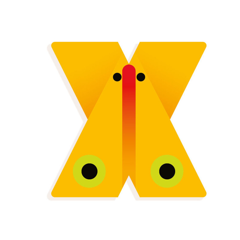 Färgglada och grafiskt designade bokstäver illustrerade som olika djur, tillverkade i trä och målade i giftfria färger. Varje bokstav har två dubbelhäftande fästen på baksidan för enkel uppsättning.