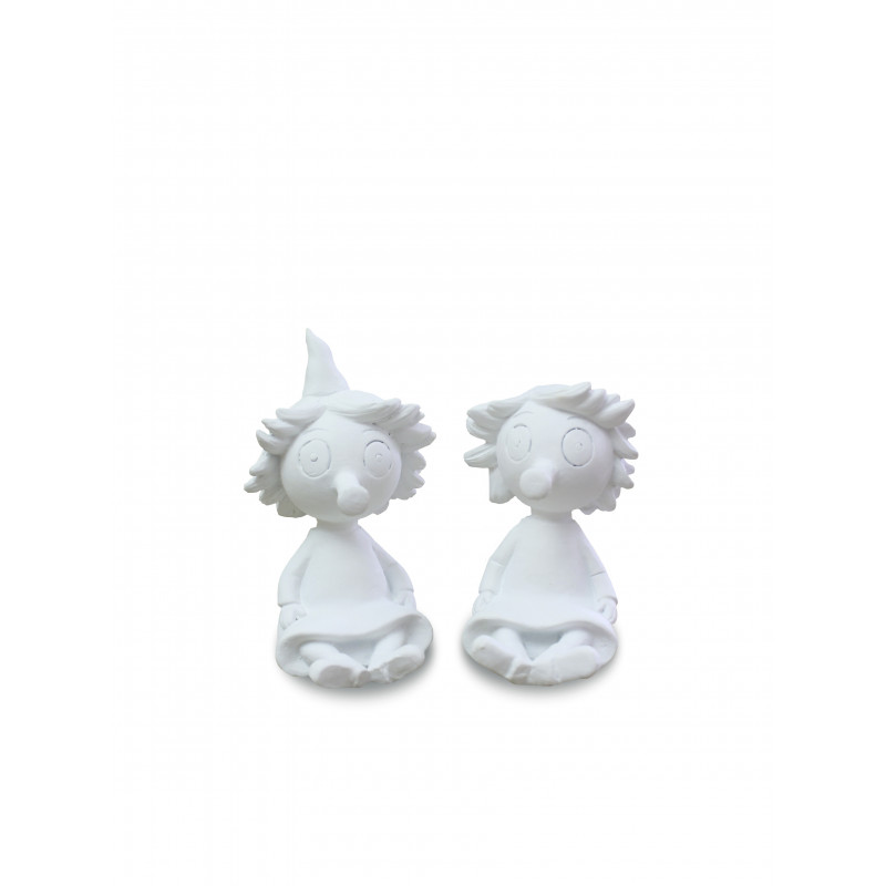 Söta figurer som föreställer Mumin karaktärerna Tofslan och Vifslan.