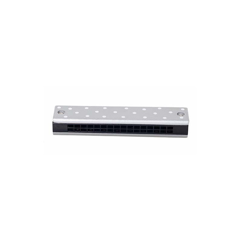 Silvrigt munspel i trä dekorerat med prickar. Munspelet är utformat för barn och uppmanar barnets musikaliska förmåga. Ett roligt instrument för den lilla musikanten