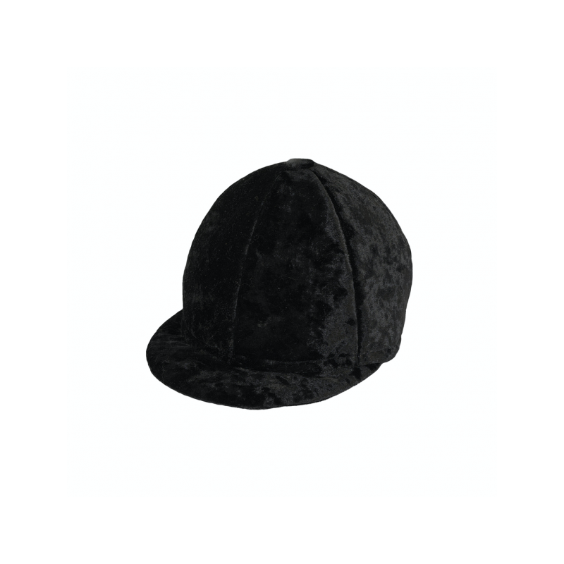 Verklighetstrogen klassisk ridhjälm för ridturen på käpphästen. Tillverkad i svart vadderad velour med kardborreband baktill för att enkelt justera storleken.