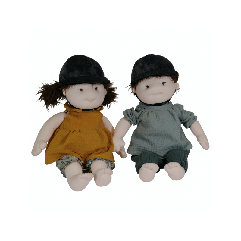 Klassisk ridhjälm för dockan på ridturen. Tillverkad i svart vadderad velour.
