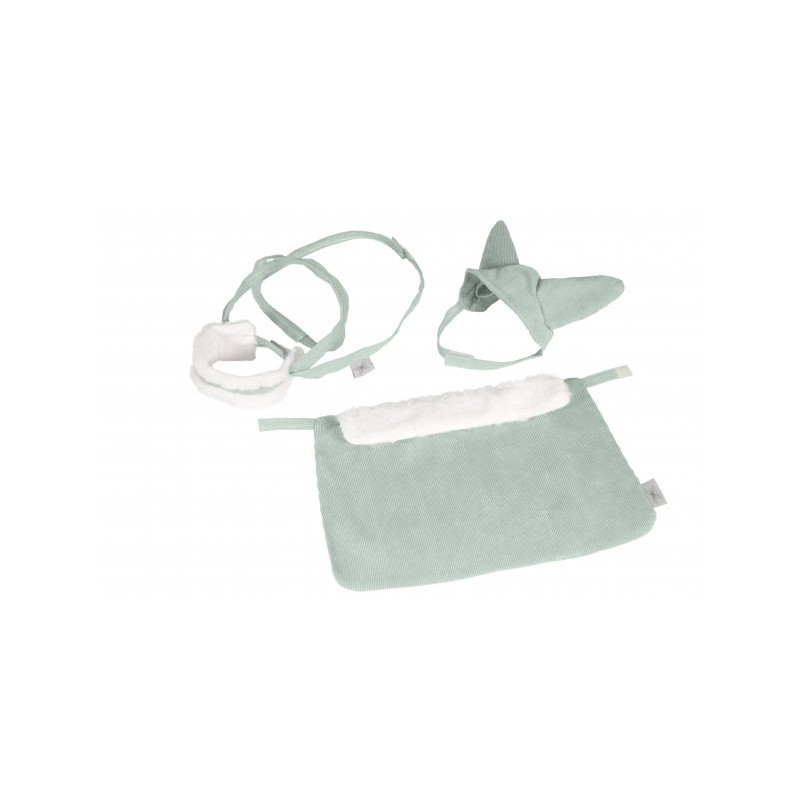 Klä din käpphäst fint i detta charmiga gröna set. Innehåller träns, hätta och täcke.