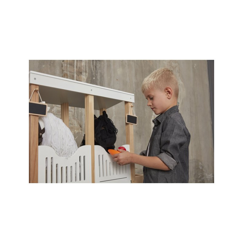 Hästarna har en naturlig look med långt hår av garn så att barnen kan styla manen med flätor eller rosetter. Brun träns i läderliknande material.