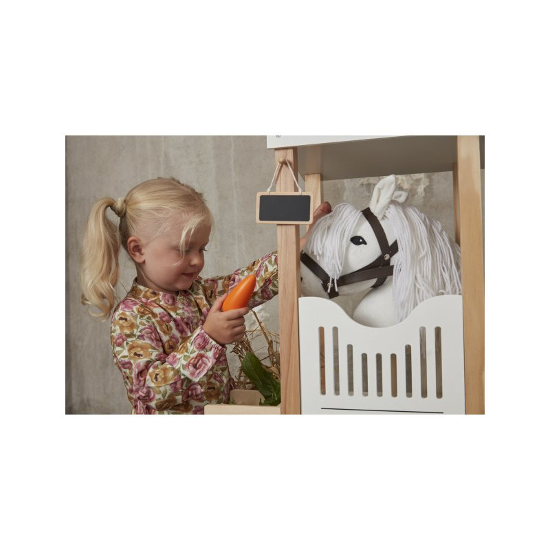 Hästarna har en naturlig look med långt hår av garn så att barnen kan styla manen med flätor eller rosetter. Brun träns i läderliknande material.