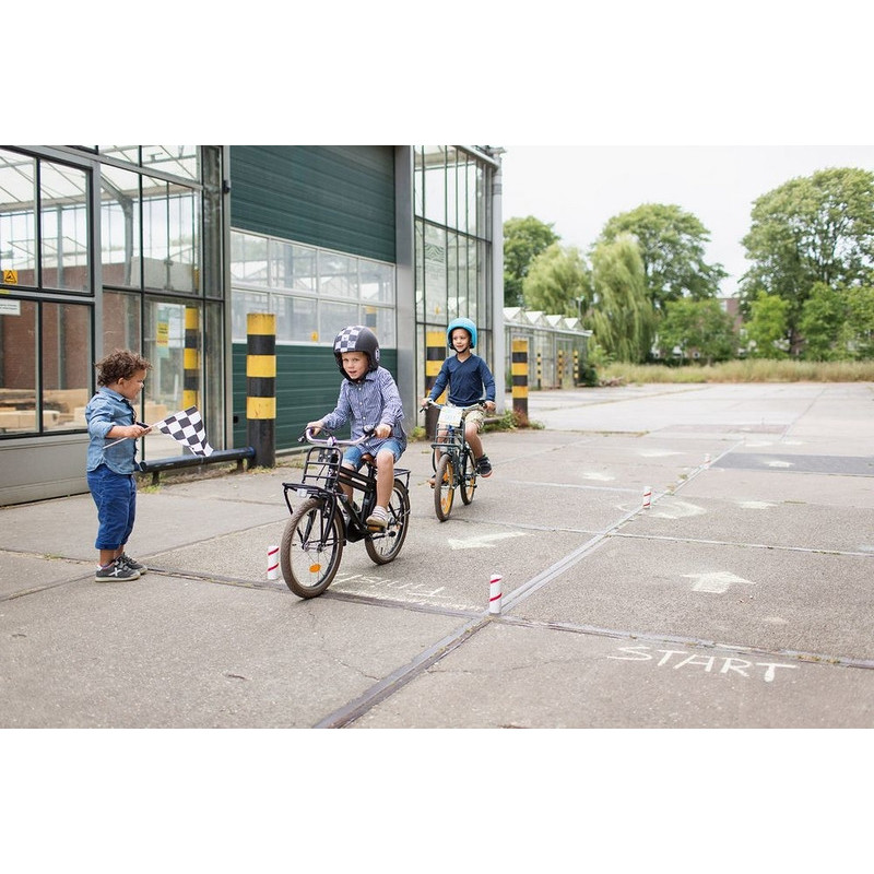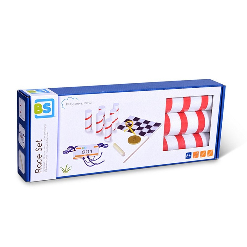 Kul racing-set för alla tävlingsglada barn. Gör din egen racer-bana med hjälp av konor (6 st) och vägkrita (1 st ca 10 cm lång). Nummerskyltar (2 st),klassisk startflagga i svart-vitt (1 st) och medalj (1 st) medföljer också i detta underhållande kit. Från 6 år
