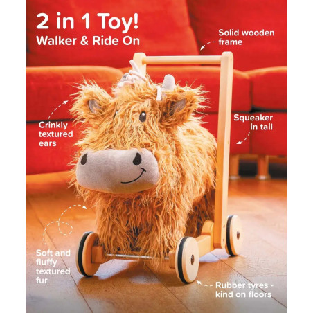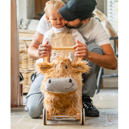 Säg hej till Hubert – vår älskvärda höglandsko och en av våra bästsäljande karaktärer, nu i en spännande trägåvagnsversion! Med sin oemotståndligt rufsiga päls, vänliga ansikte och robusta träram är Hubert här för att förvandla de första stegen till stora äventyr!