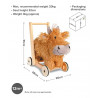 Vill man hellre ta en åktur är det bara att hoppa upp på hans rygg! Trähjulen har gummidäck för ett bra och säkert grepp på alla typer av golv.
