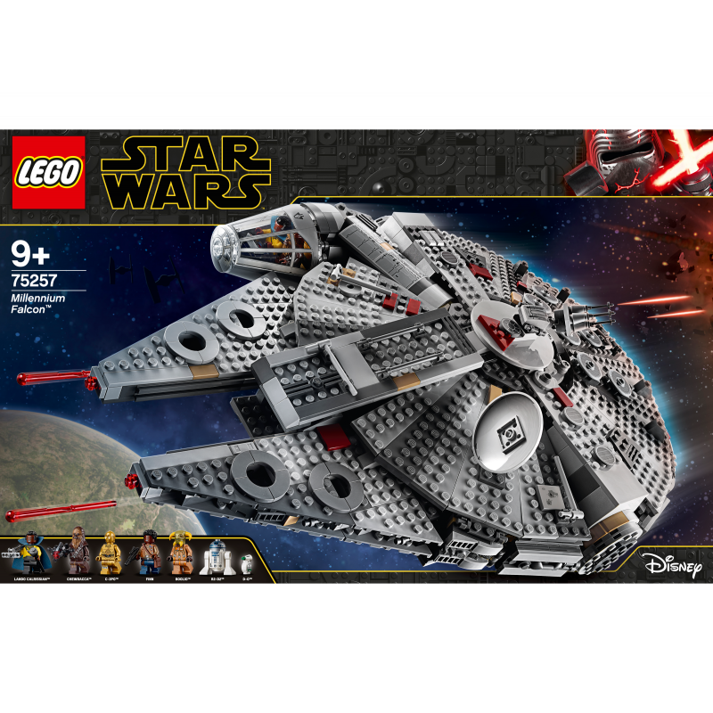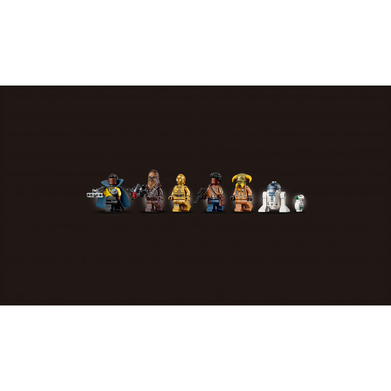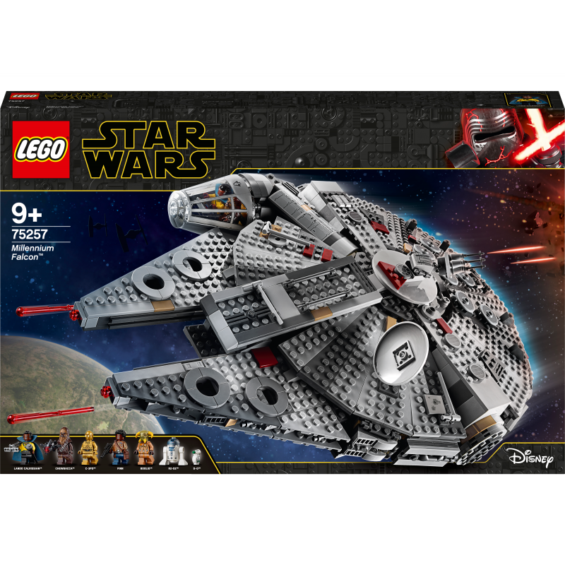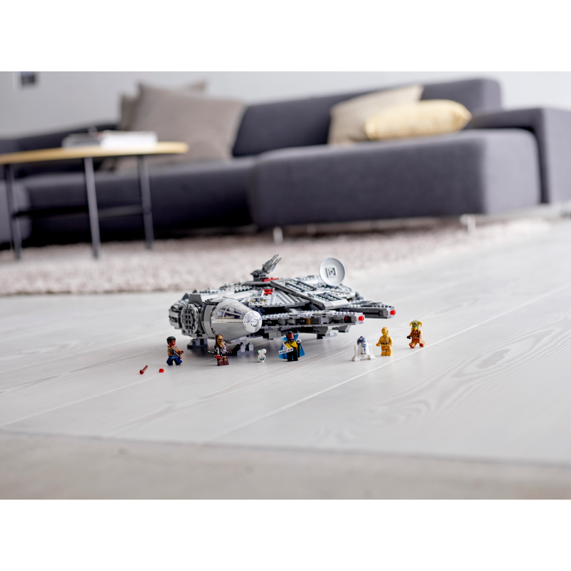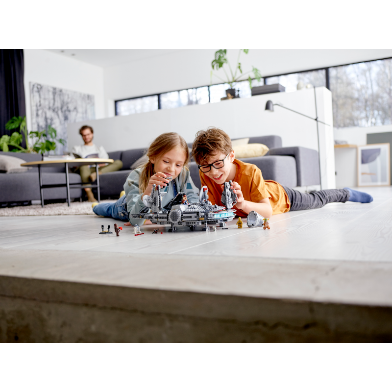 Följ med Finn, Chewbacca, Lando Calrissian, Boolio, C-3PO, R2-D2 och D-O när de färdas i galaxen ombord på det legendariska rymdskeppet Millennium Falcon. Precis som versionen från Star Wars: The Rise of Skywalker har detta skepp sett bättre dagar ... men det klarar fortfarande av att köra Kessel Run på 12 parsek ... förmodligen! Så, höj rampen, sätt dig vid spakarna och gör dig redo att åka på ett mäktigt LEGO® Star Wars™ äventyr!