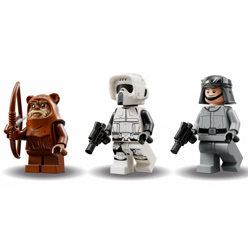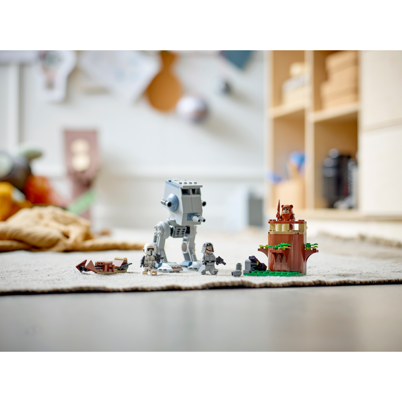 Hjälp den modige ewoken Wicket att försvara sig mot spaningssoldaterna! Bygg en utkiksplats i Endors skogar och förbered dig för strid. Här kommer den mäktiga AT-ST trampande bland träden. Och se upp för spaningssoldaten som attackerar på en speeder. Använd Wickets båge och pil och katapult för att stoppa dem. Det här är en strid du måste vinna!