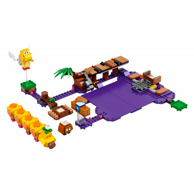 Träffa en Wiggler i Soda Jungle med detta actionspäckade expansionsset att lägga till din LEGO® Super Mario™ startbana! Vicka och slå på Wiggler för att fälla ut den hemliga bron. Akta dig för Goomba som gömmer sig under bron. Använd den glidande plattformen och flotten för att undvika det giftiga träsket. Få grymma krafter med superstjärneblocket och besegra Koopa Paratroopa för att slutföra din episka resa!