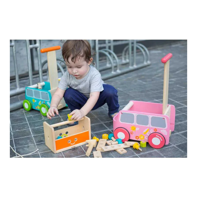 Verktygslåda i 18 delar som kan byggas om till en robot! Innehåller hammare, skiftnyckel med skruvmejsel, muttrar och bultar. En ekologisk och giftfri träleksak från PlanToys.
