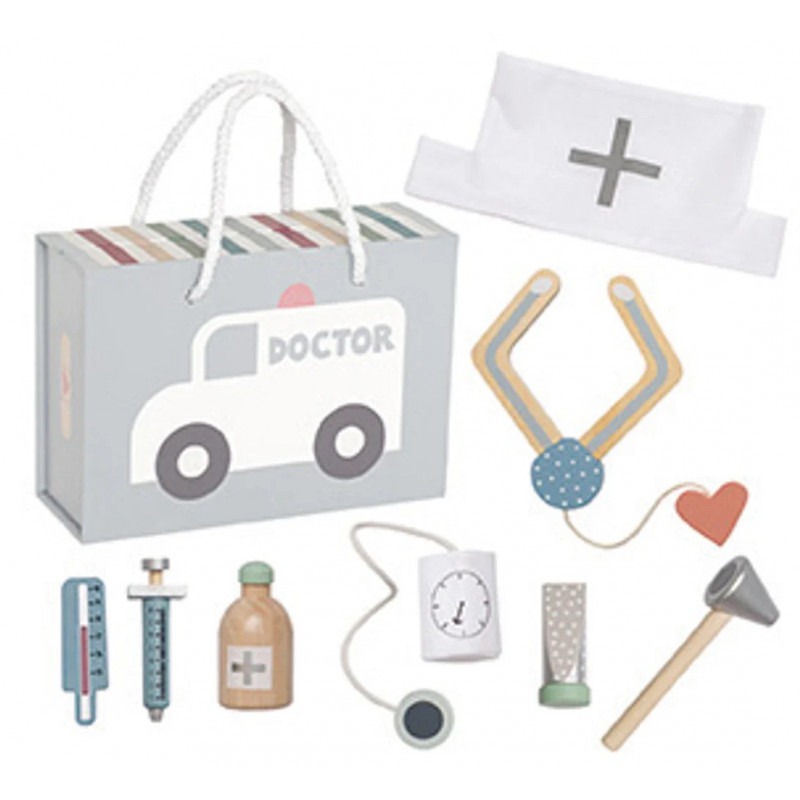 Välkommen till doktorn! I den här rosa doktorsväskan från Jabadabado finns all utrustning du behöver för att kunna ge den bästa vården till familj, vänner och gosedjur. Men vet aldrig vem som är i behov av att träffa en liten doktor. Ditt barn kommer ha riktigt roligt med detta doktors-set samtidigt som kreativ lek främjas och barnet uppmuntras att vara omhändertagande och hjälpsam. Tillverkad av FSC™-certifierat trä (FSC™C194598).