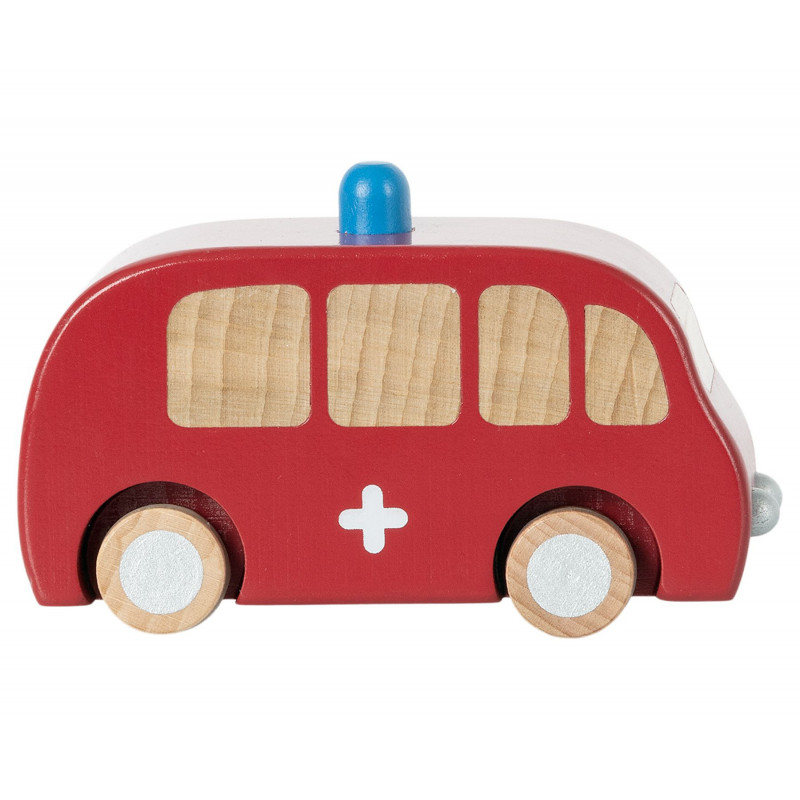Den här fina bilen är en perfekt present att ge bort till den biltokige, tillverkad i trä med "pullback" funktion som innebär att bilen åker fram av sig själv när man dragit den bakåt en bit. Bilen är fint lackad där det naturliga trät fåt lysa igenom på sina ställen. Tillverkad av Maileg. Mått: 11,5 cm