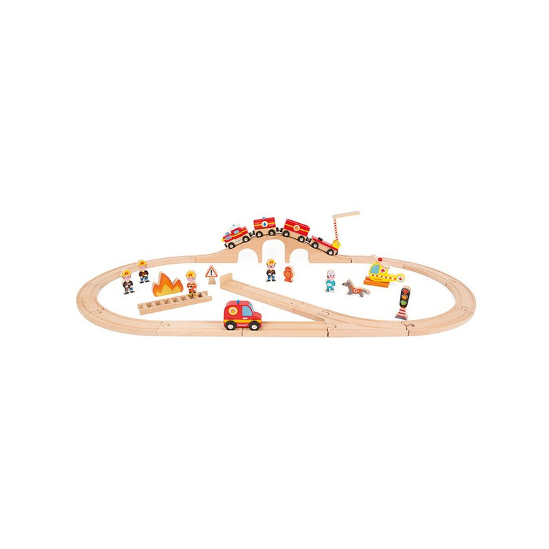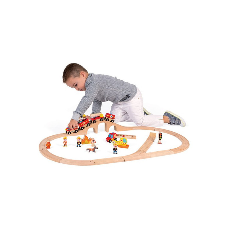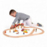 En garanterat uppskattad gåva är denna roliga tågbana, komplett med räls bro tåg och figurer. Totalt 33 delar. Fordonen passar Ikea, Brio och Claes Ohlson tågräs.