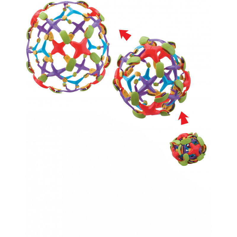 En kul och färgglad boll som går att göra större och mindre i och med dess innovativa design. Vill du ha en liten boll trycker du ihop den och gör den nät-lika strukturen tightare, och vill du ha en större boll töjer du ut den.