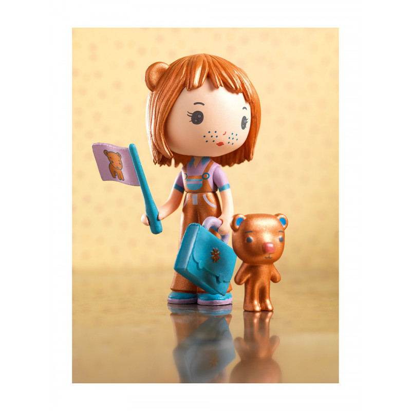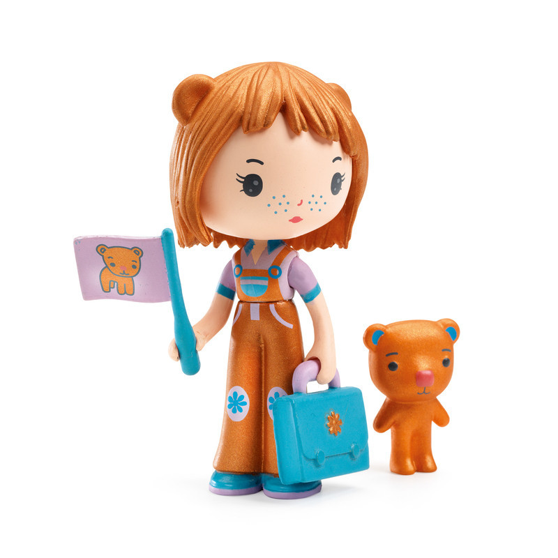 Från serien Tinyly kommer djurvännen Anouk och hennes söta följeslagare minibjörnen Nours. Anouk har rörliga armar och vridbart huvud och kommer med en björn-flagga och en väska.