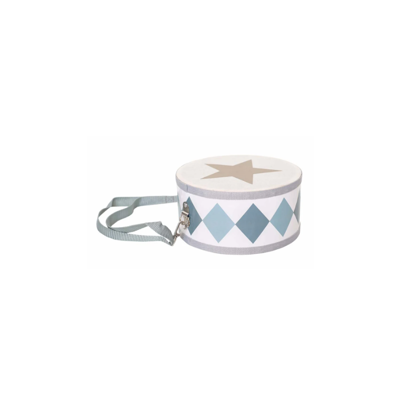 Trumma dekorerad med sött mönster i olika färger. Att spela trumma är ett roligt och enkelt musikinstrument. Till trumman ingår ett avtagbart band samt 2 trumpinnar.