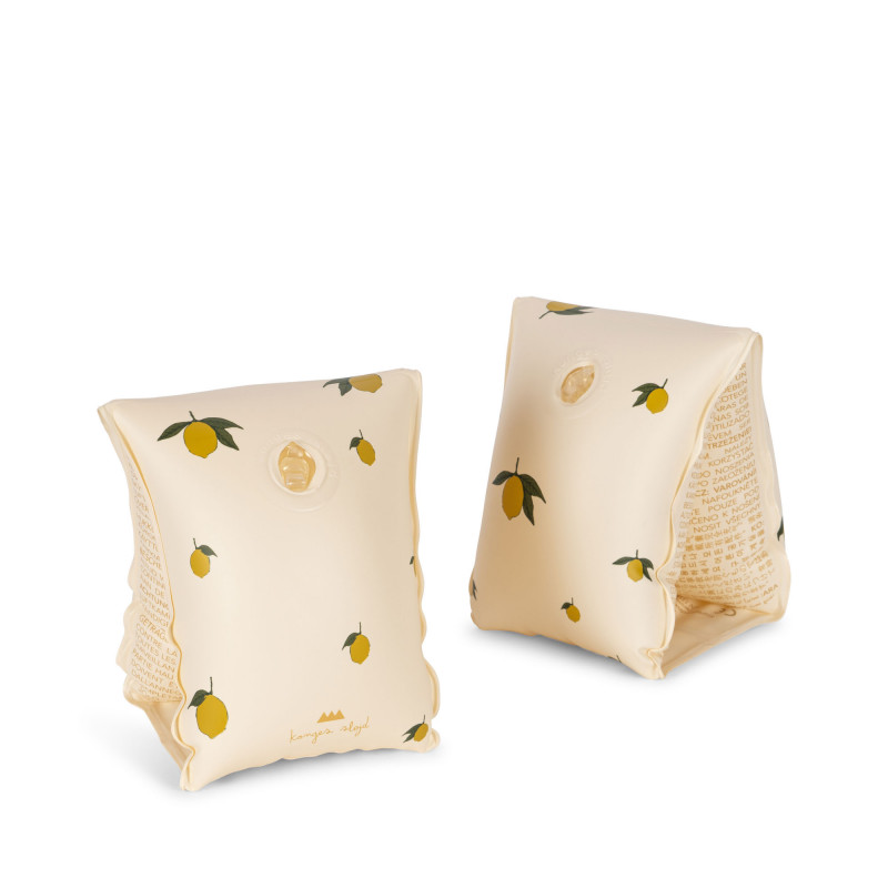 Uppblåsbara armringar i slitstark PVC. Dekorerade med söt citroner.